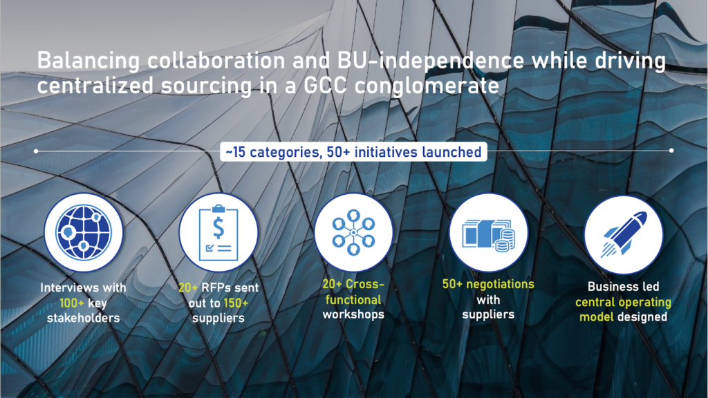 Reimagined a new way of sourcing for ~15 categories with cost savings of 5-10% across BUs